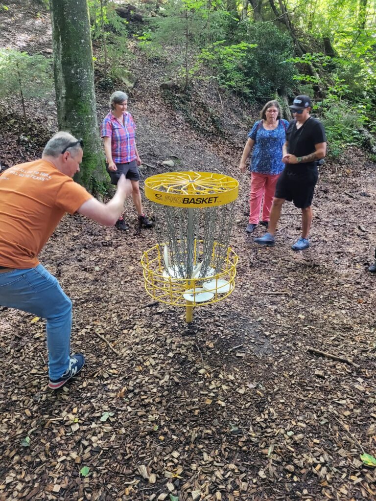 Vorhand, Rückhand, Par... ui, so vüù Begrüffe ù nai bruchts no Priichi! Gar nit so iifach das discgolfe, aber luschtig isch es. De Teamwettkampf het unentschiede g'endet.